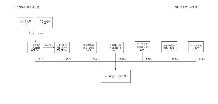 招股书显示,截至2023年末,广州银行前两大股东分别为广州金融控股集团有限公司(下称“广州金控”)和广州市广永国有资产经营有限公司(下称“广永国资”),持股比例分别为22.58%和19.71%,而广州金控则是广永国资的全资股东。