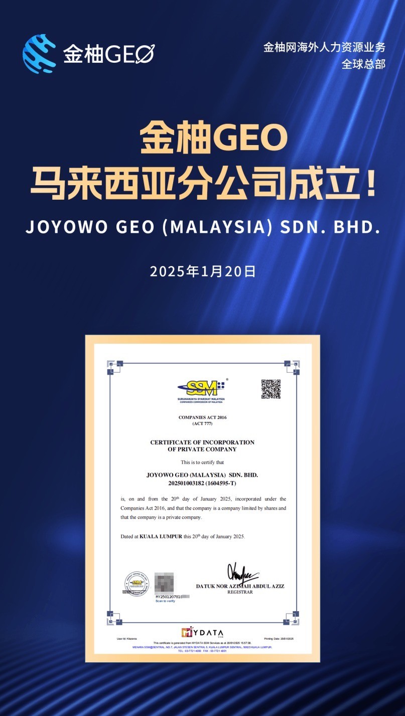 2025年1月20日,金柚GEO在马来西亚正式成立自营公司,标志着公司在国际化进程中又一次迈出了重要一步。这不仅持续提升金柚GEO的海外市场开拓及落地服务能力,也为中国企业在马来西亚乃至东盟市场拓展业务提供了强有力的支持。